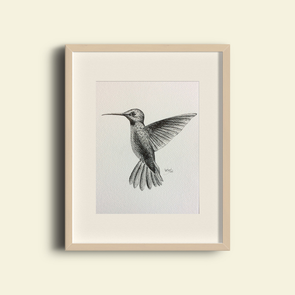 This hummingbird was created with Unipin 0.3 Black ink pens on beautiful Arches 300gsm cotton paper.